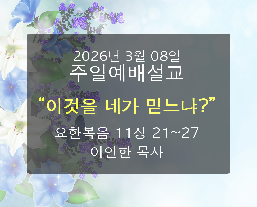 3.08 주일예배 [설교 : 이인한목사] 08.03.2026 sermons 0 Likes ShareFacebook div class="videowrap">< ... Read More