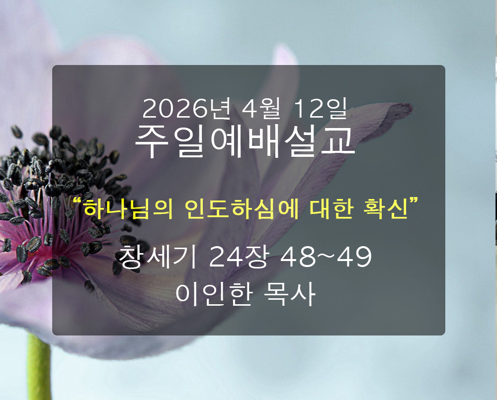 4.12 주일예배[설교 : 이인한 목사] 12.04.2026 sermons 0 Likes ShareFacebook div class="videowrap">< ... Read More